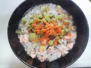 玄米雑穀粥 ブロッコリー 人参 しめじ