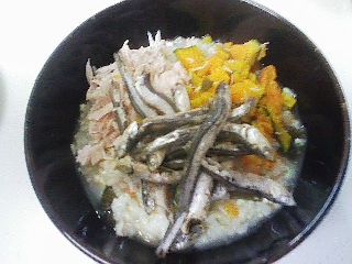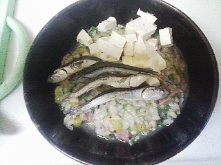サンマ 玄米粥 大豆 人参 白菜 シイタケ
