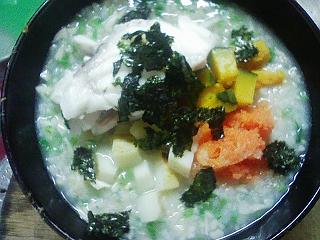 玄米粥(いんげん 舞茸 わかめ)